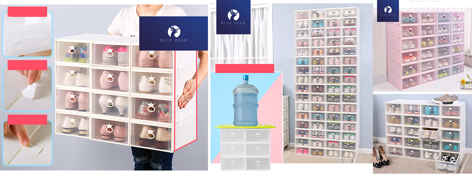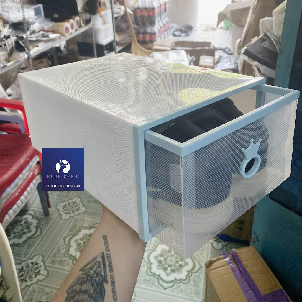 Clip REVIEW Hộp đựng giày dép ngăn kéo nhựa cứng nắp trong suốt - Blue Deer