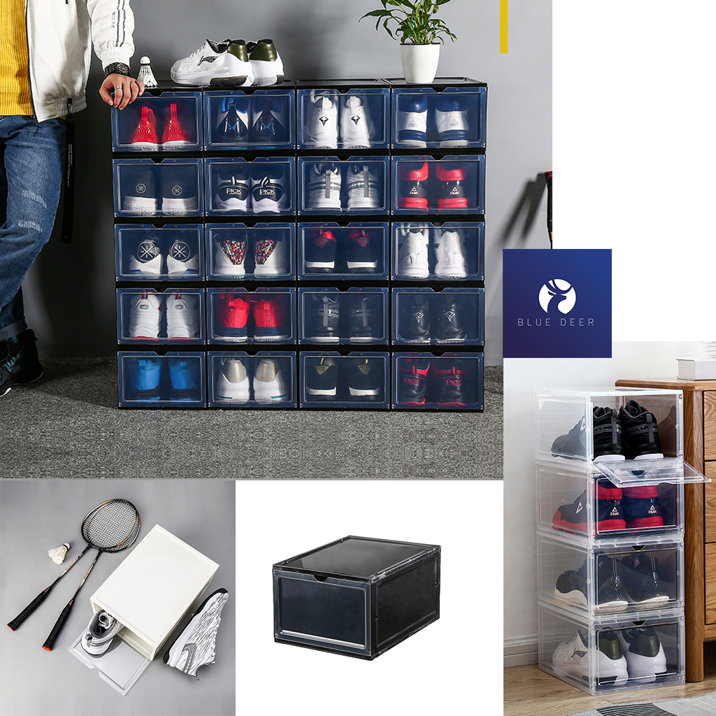 Hướng dẫn Hộp Đựng Giày Nhựa Cứng Cao 18CM Ráp - Màu Đen và Trong Suốt - Chịu Nặng hơn 20KG - BLUE DEER
