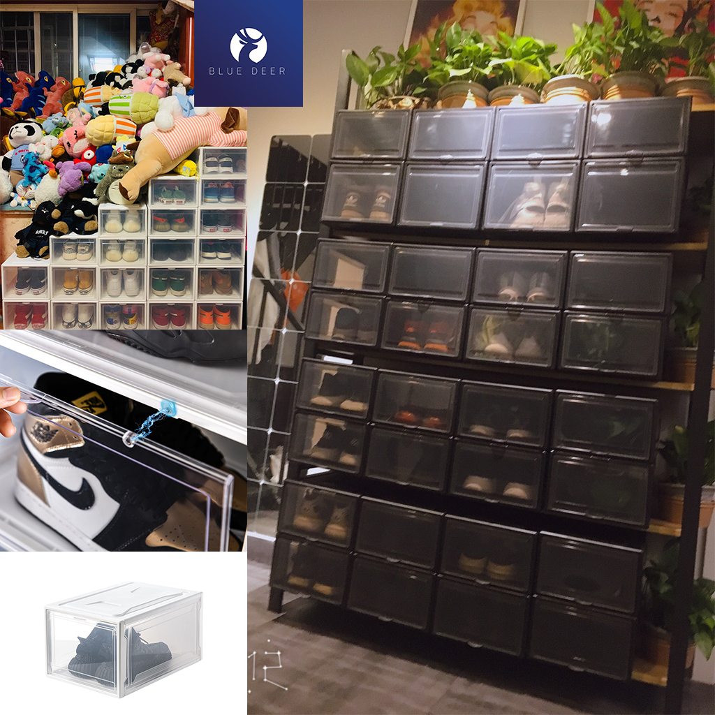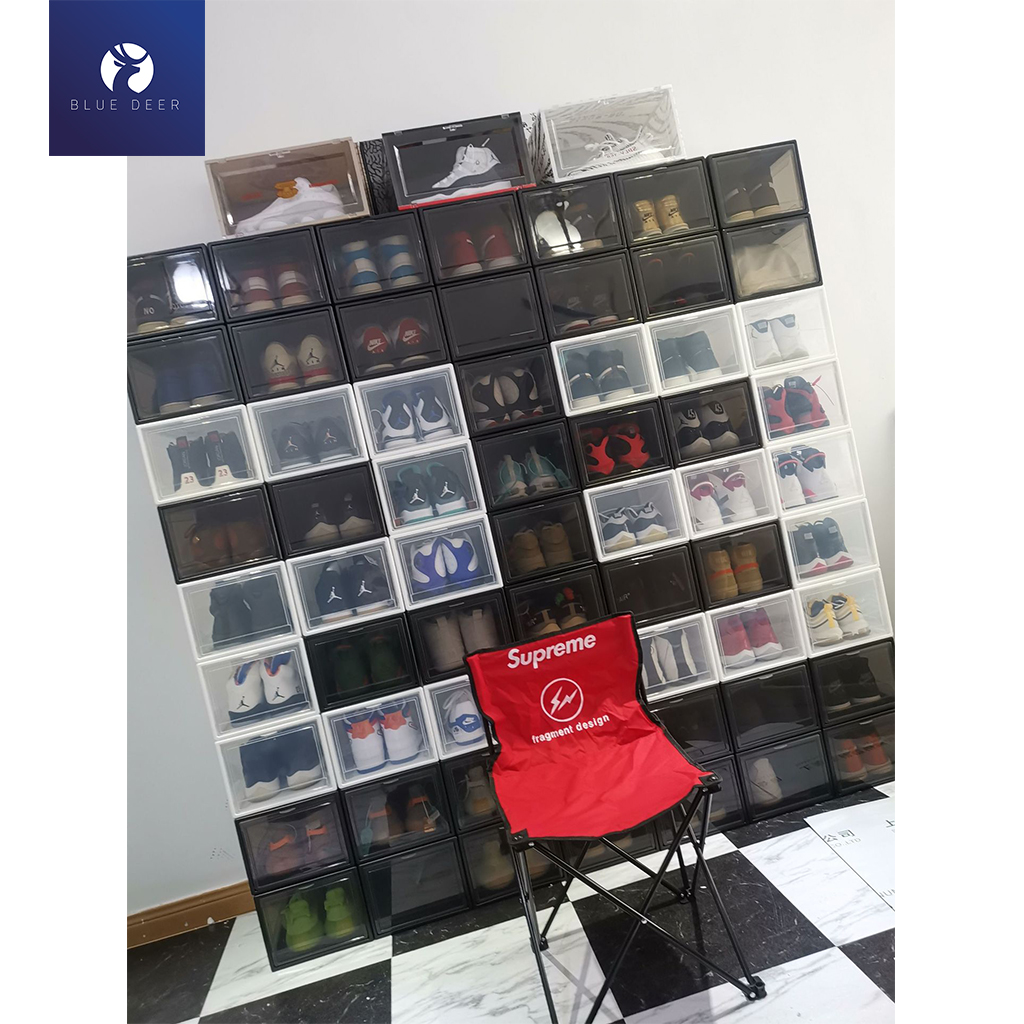 Hộp đựng giày dép ngăn kéo nhựa cứng nắp trong suốt - Blue Deer
