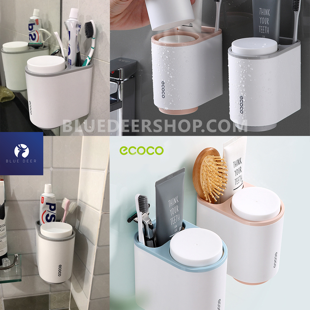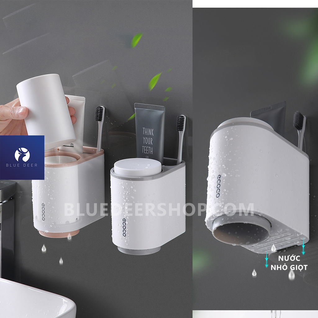 Kệ Để Bàn Chải Đánh Răng ECOCO, Kệ Nhà Tắm Dính Tường (Tặng Kèm 2 Cốc) - BLUE DEER