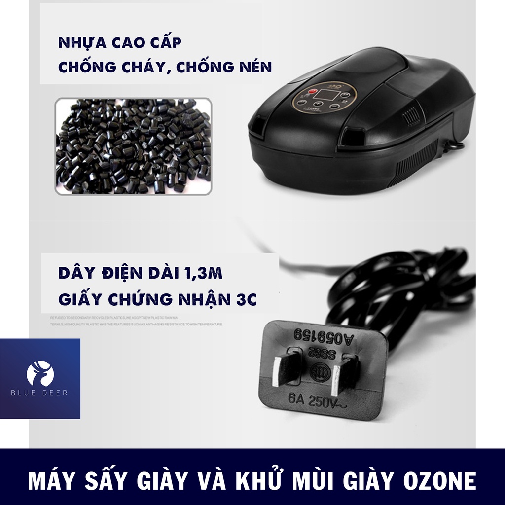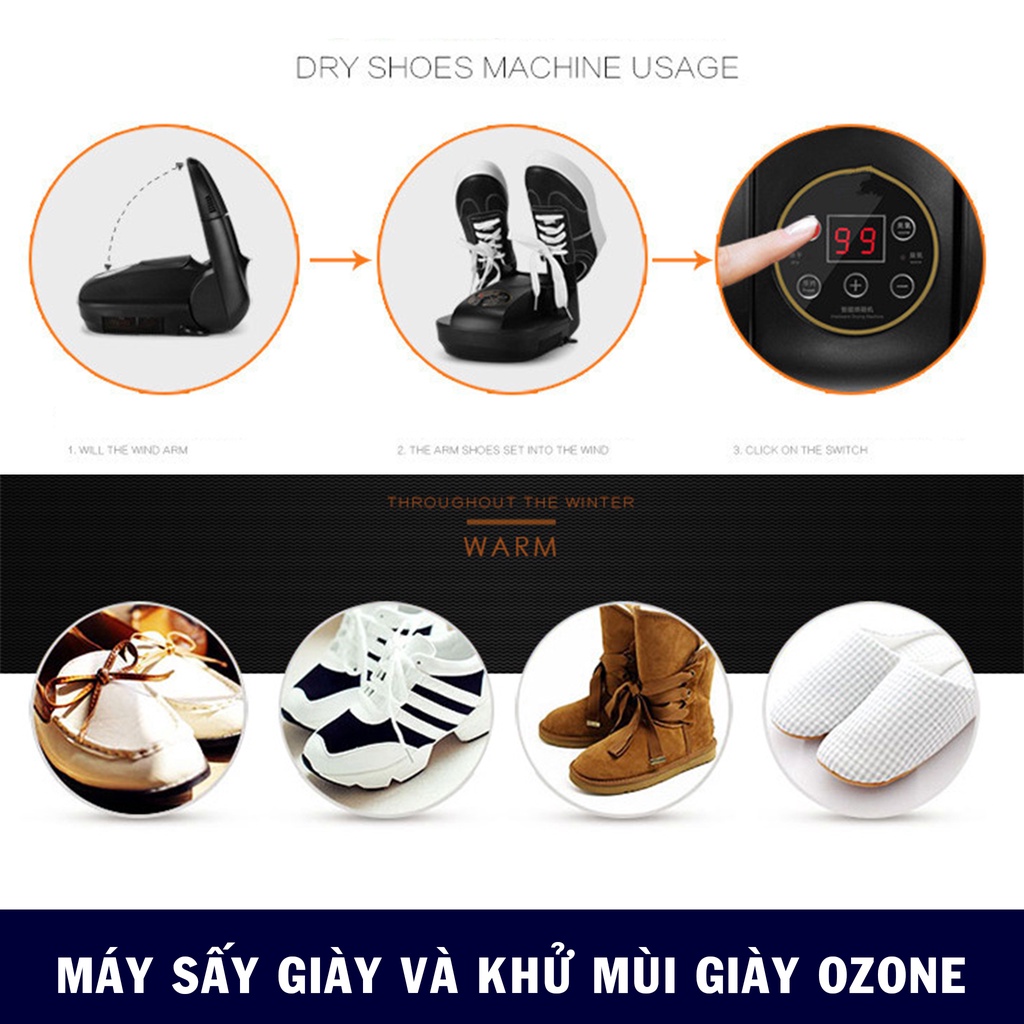 - Máy Sấy Giày OZONE này có thể khử mùi, khử trùng, ozone và làm khô giày, tất, găng tay, v.v. Đây là loại sản phẩm mới thân thiện với môi trường, an toàn, dễ vận hành, thời gian hẹn giờ từ 1-99 phút. Một chiếc máy sấy cần có cho cả gia đình trong mùa mưa bão:
